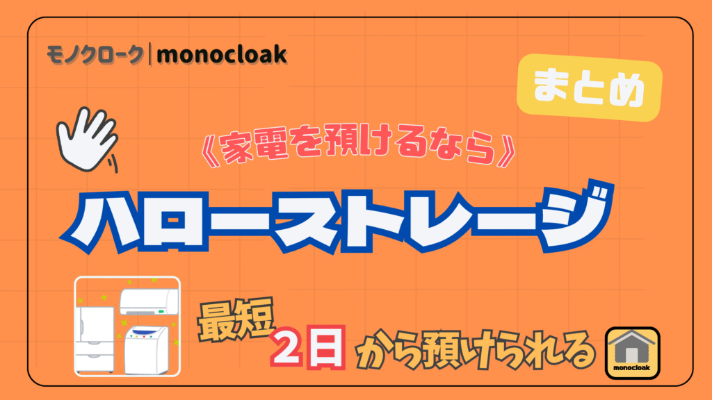 家電も安心して預けられ、最短2日で利用開始、そして解約もスムーズなのがハローストレージです。