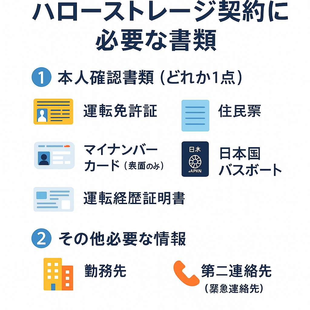 ▶本人確認書類の詳しい内容については《ハローストレージ契約の流れ》で確認できます。