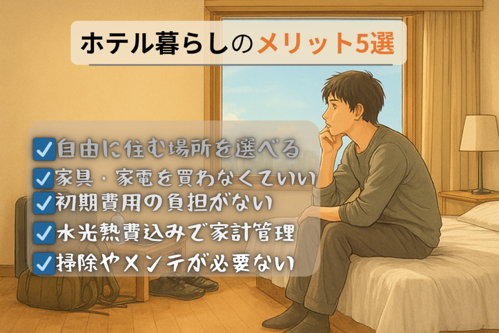 ホテル暮らしは多くのデメリットがありますが、それ以上にメリットも数多くあります。