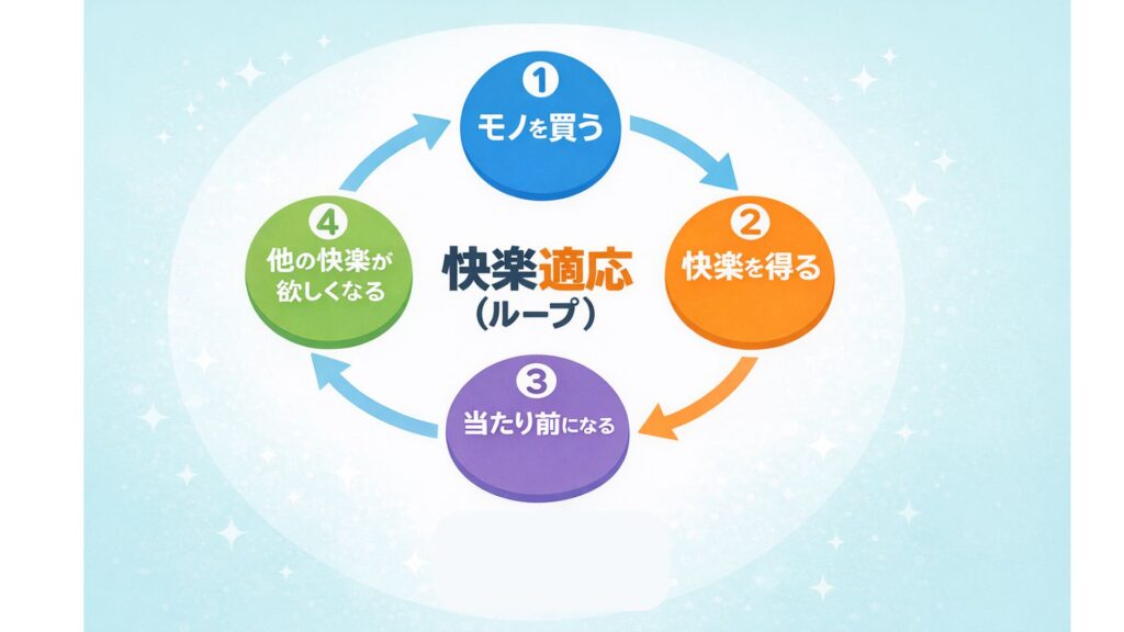「快楽適応」に陥ると永遠に満足することがありません。