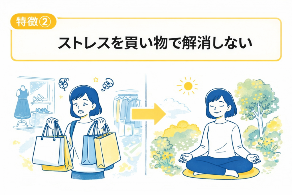 幸せな人の2つ目の特徴は、「ストレスを買い物で解消しようとしない」こと。