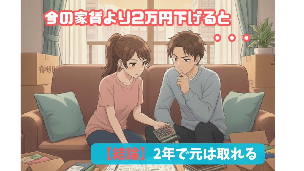 【結論】今の家賃より2万円下げると2年で元は取れる計算になる