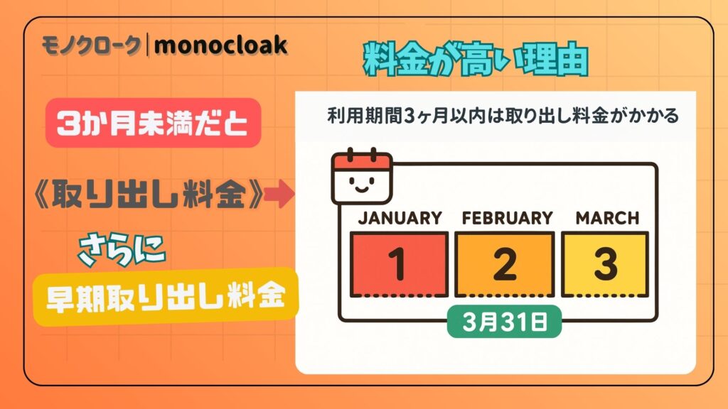 3ヶ月以内に荷物を取り出すと、早期取り出し料金がかかるため割高になってしまいます。