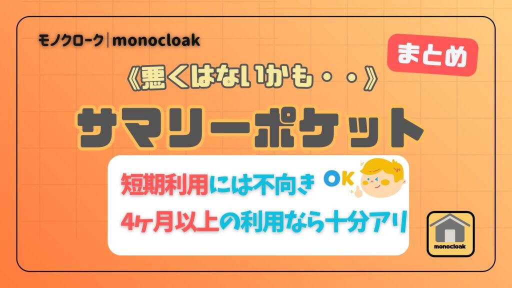 サマリーポケットは4ヶ月以上利用ならお得ですが、短期利用はおすすめできません。