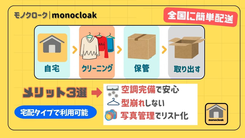 衣類をクリーニング→預ける→きれいさをキープ→目的地に発送まで完結できるのは、手間と安心どちらも享受できる。